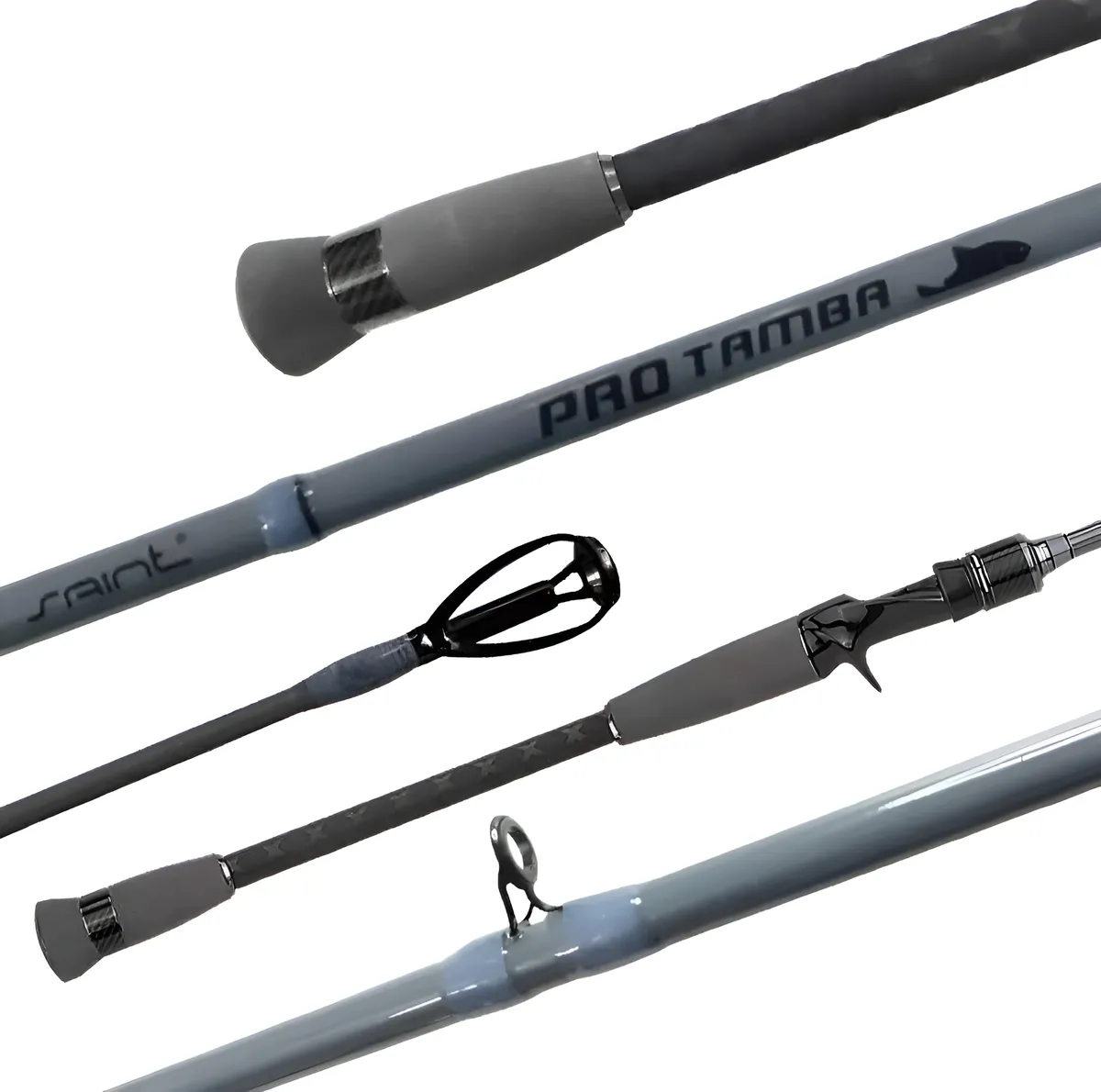 A Nova Vara Pro Tamba veio com o novo design de butt cap com detalhe em carbono, cabo bipartido com revestimento emborrachado, eva na cor cinza e novo Reel Seat Saint em preto black piano, para deixá-la ainda mais agressiva e para finalizar seu Fore Grip é em alumínio com acabamento em carbono gravado a laser a marca Pro Tamba.